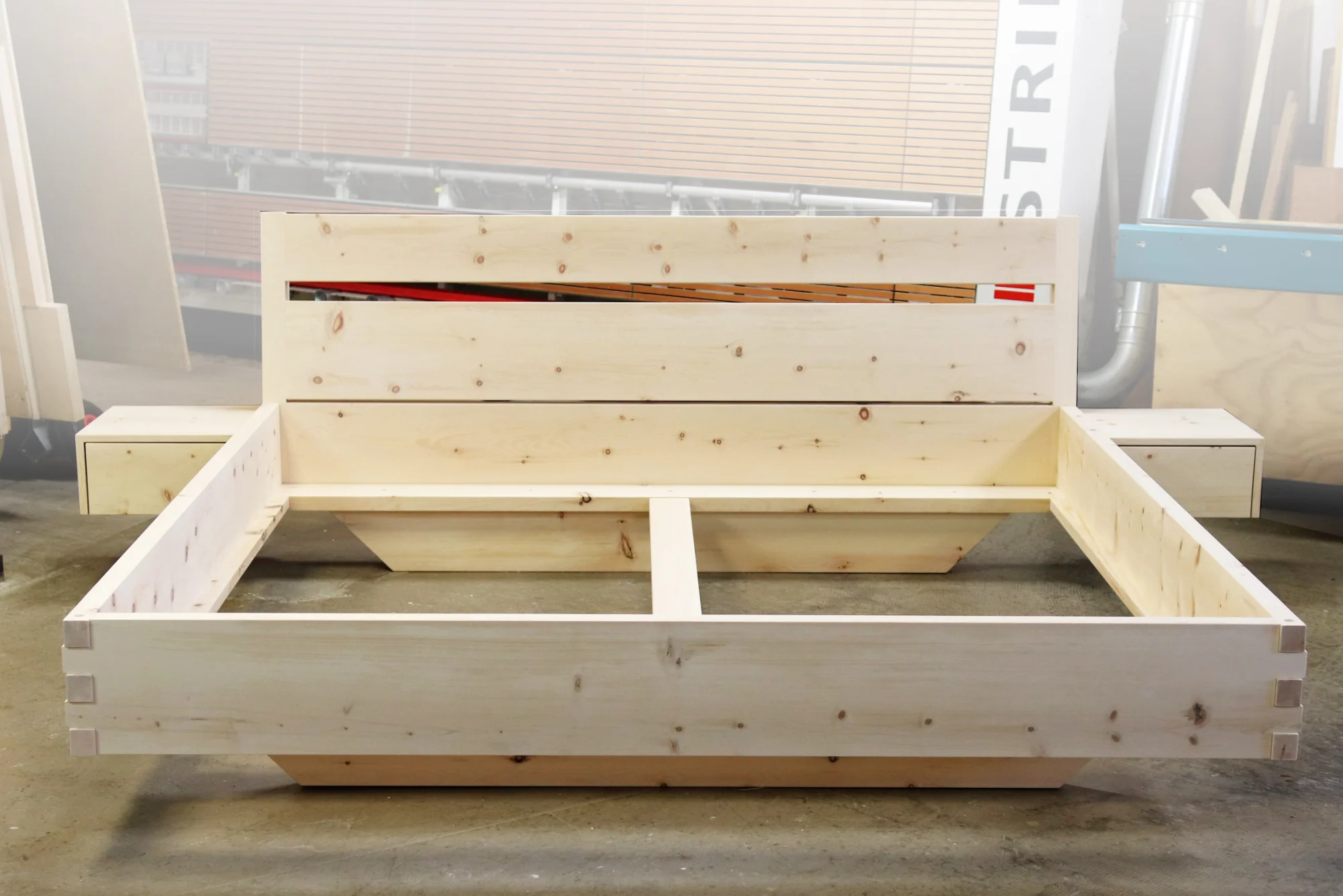 Massivs modernes Zirbenbett mit Fingerzinkung